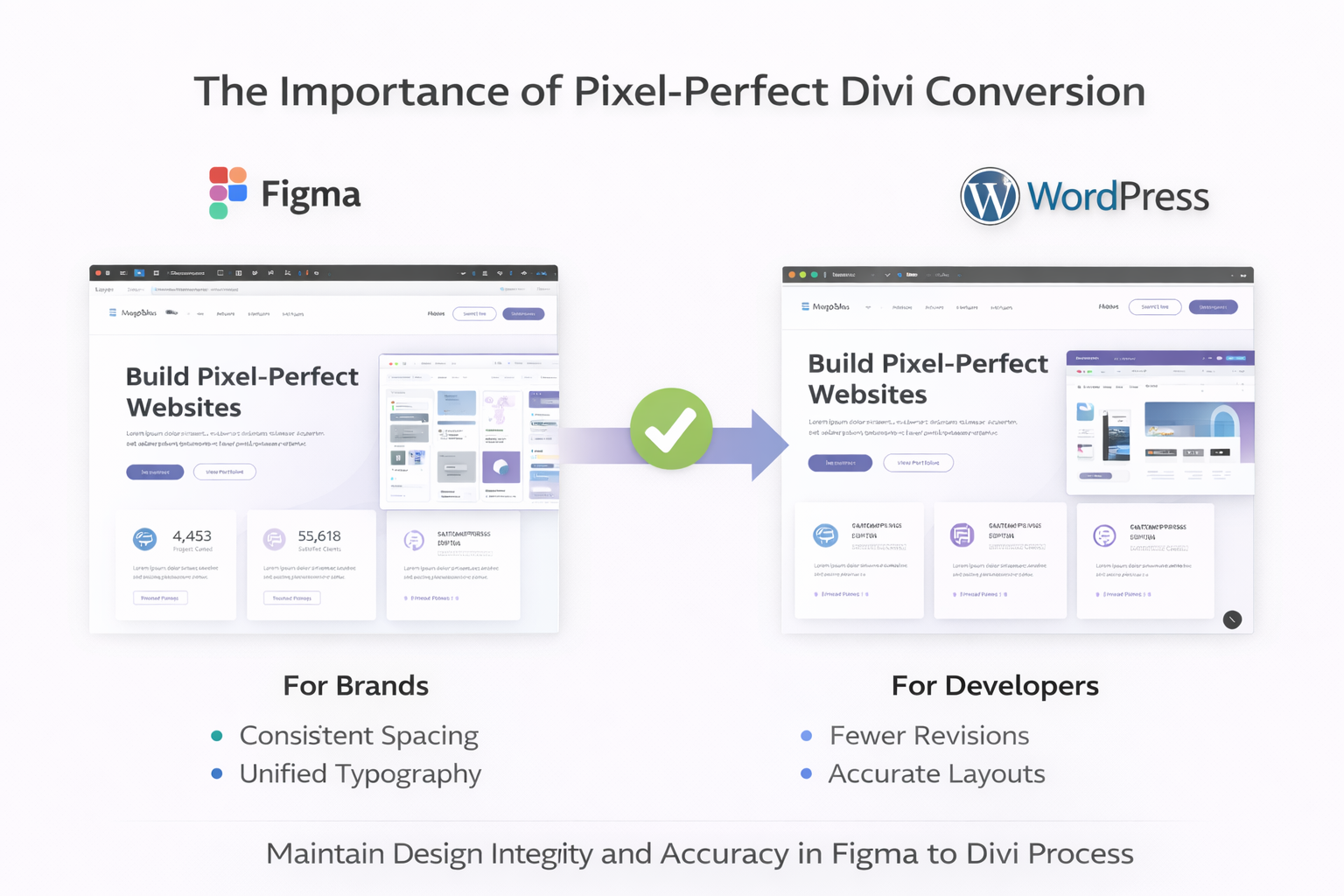 The challenge appears when teams attempt a smooth Figma to Divi transition without losing visual accuracy. Pixel-perfect design refers to reproducing a layout exactly as designed, including spacing, typography, colors, and alignment. For brands, consistency builds trust. For developers, accuracy reduces revisions and rework. A refined Figma to Divi workflow helps bridge the gap between design intent and live WordPress pages.