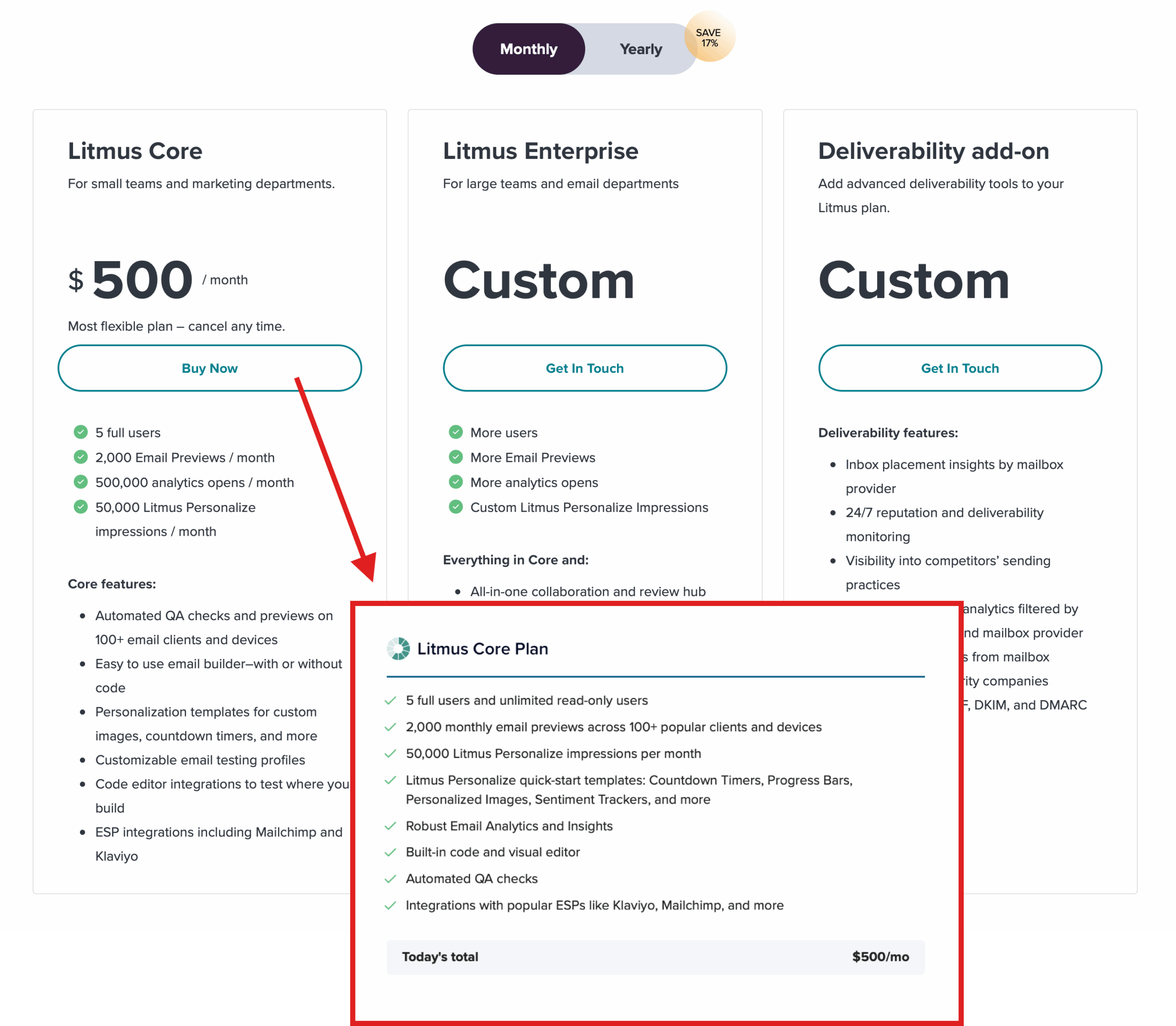 Despite the significant price increase, Litmus Core provides exactly the same feature set as the previous Plus plan.
